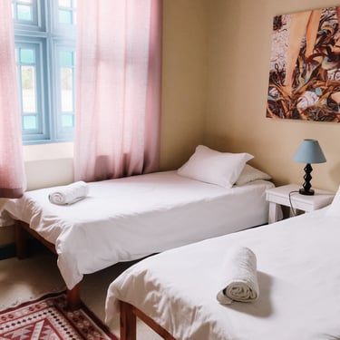 Situated at Muddy Waters Art Studios, this artist retreat offers visually pleasing bohemian interior accommodation with beautiful views.